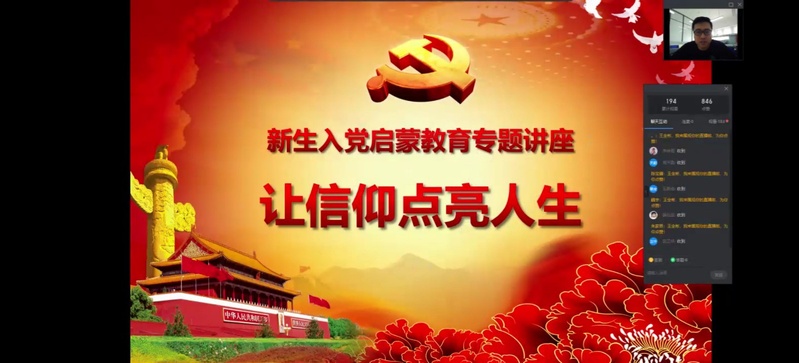 工商管理学院党委组织员王全彬担任第一讲《入党启蒙教育——让信仰点亮人生》主讲嘉宾。王全彬围绕新时代大学生确立马克思主义科学信仰的重要性;加入中国共产党的意义;发展党员的条件和程序;为加入中国共产党所做出的准备进行讲解。讲述了六个七一勋章获奖人的感动事迹;带领新生向防疫人员、抗洪人员等“最美逆行者”致敬。王全彬给予新生三点建议:端正入党动机,主动靠拢党组织,加强自我修养,做到自我完善。
