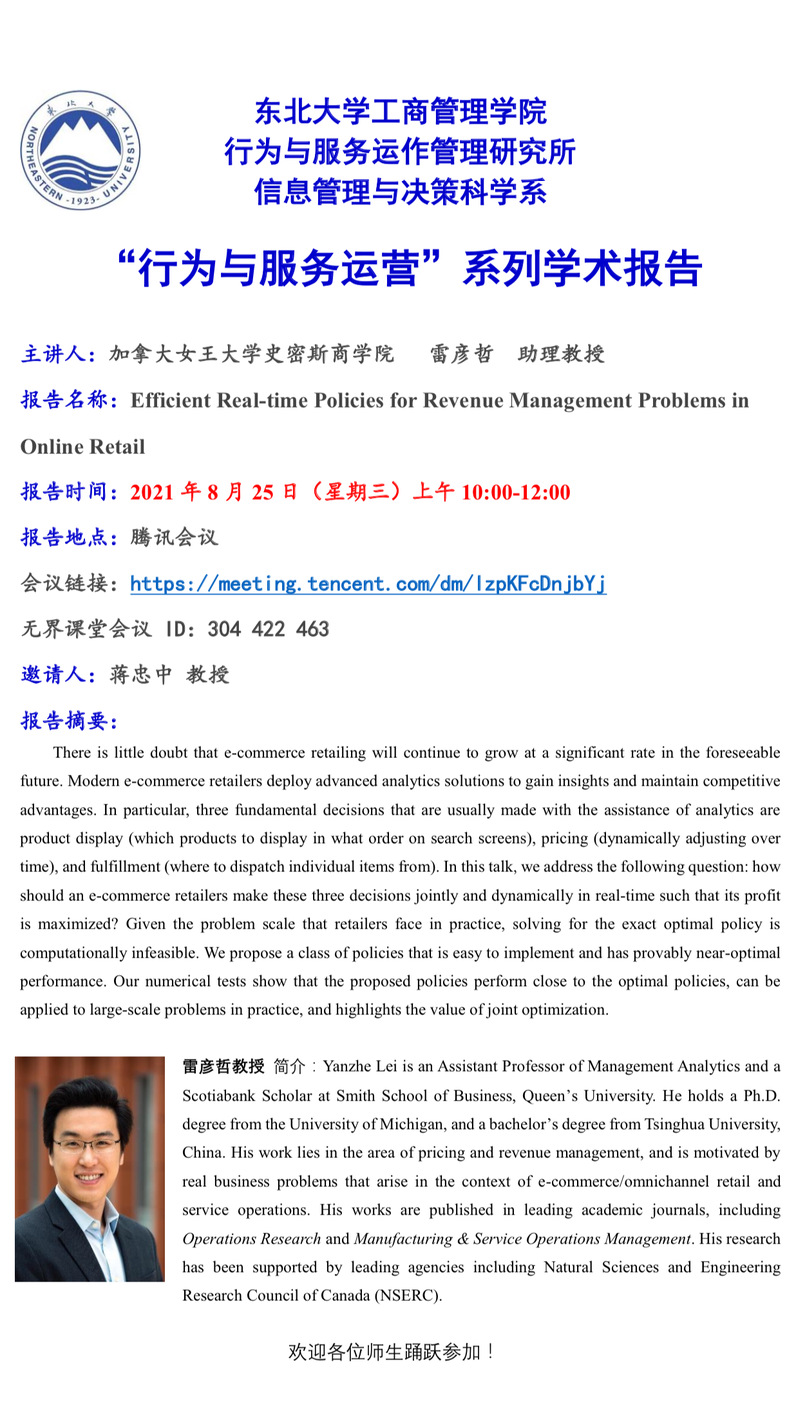 邀请加拿大女王大学史密斯商学院雷彦哲助理教授学术报告