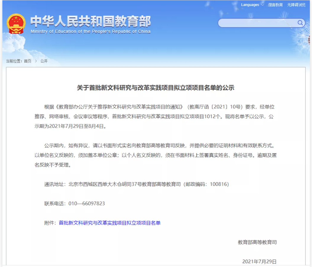 新文科研究与改革实践项目面向全国普通本科高校开展。根据新文科建设的目标任务,教育部确定《新文科研究与改革实践项目指南》,设新文科建设发展理念、专业优化、人才培养模式改革、重点领域分类推进、师资队伍建设、特色质量文化建设研究与实践6个选题领域、22个选题方向,项目建设周期为3年。
