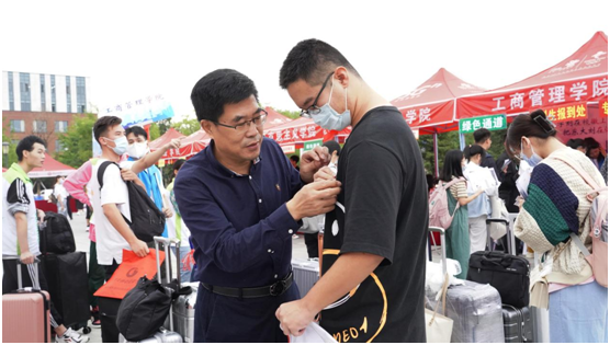 工商管理学院领导始终心系学生,坚守学生疫情防控一线,为新生带来温暖的关怀与问候。9月7日,工商管理学院院长蒋忠中,党委书记郝树满深入迎新报到现场指导工作,慰问参加迎新工作的师生和志愿者。
