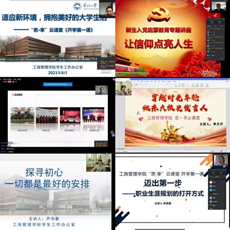 “育人为先,商英启航。”为响应教育部关于上好开学第一课的号召,更好地发挥融入式、嵌入式、渗入式的立德树人效应,工商管理学院围绕建党百年、抗击新冠肺炎疫情等主题,开展“思·享”云课堂——《2021开学第一课》活动。“思·享”云课堂即工商管理学院辅导员思想引领育心工程,自2020年2月实施以来,共计61堂宣讲,线上直播观看人数累计24312人,直播互动累计115140余次。云课堂以“爱校、爱乡、爱国、爱人类”为思想主线,通过入党启蒙教育、新生适应性教育、第二课堂助力全面发展等主题帮助同学们快速适应大学生活,启发青年思考人生的价值和生命的意义。