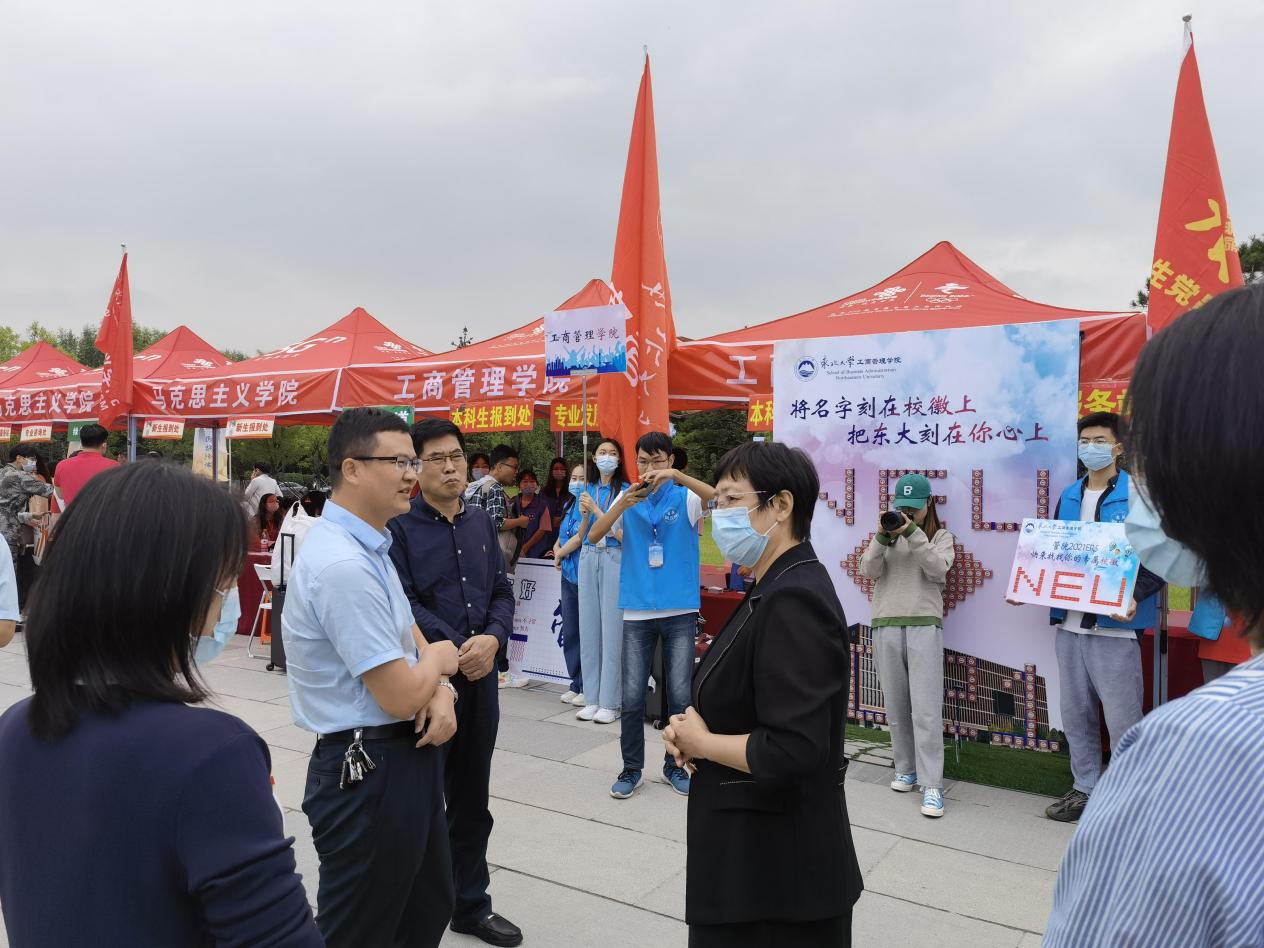校党委书记熊晓梅一行到工商管理学院迎新现场视察工作,工商管理学院院长蒋忠中、党委书记郝树满、党委副书记兼副院长严立宁及学工队伍就学院迎新工作及具体情况向校领导进行了现场汇报。