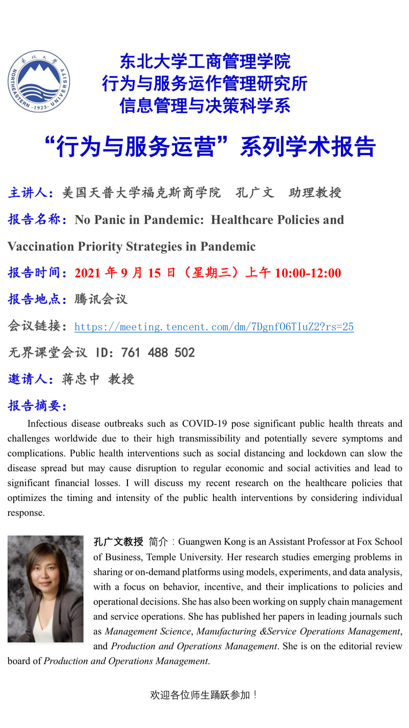 邀请美国天普大学福克斯商学院孔广文助理教授学术报告