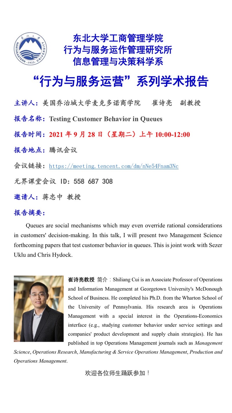 邀请美国乔治城大学麦克多诺商学院崔诗亮副教授学术报告