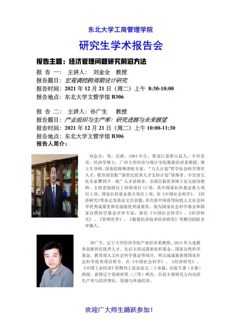 东北大学工商管理学院研究生学术报告会(二)