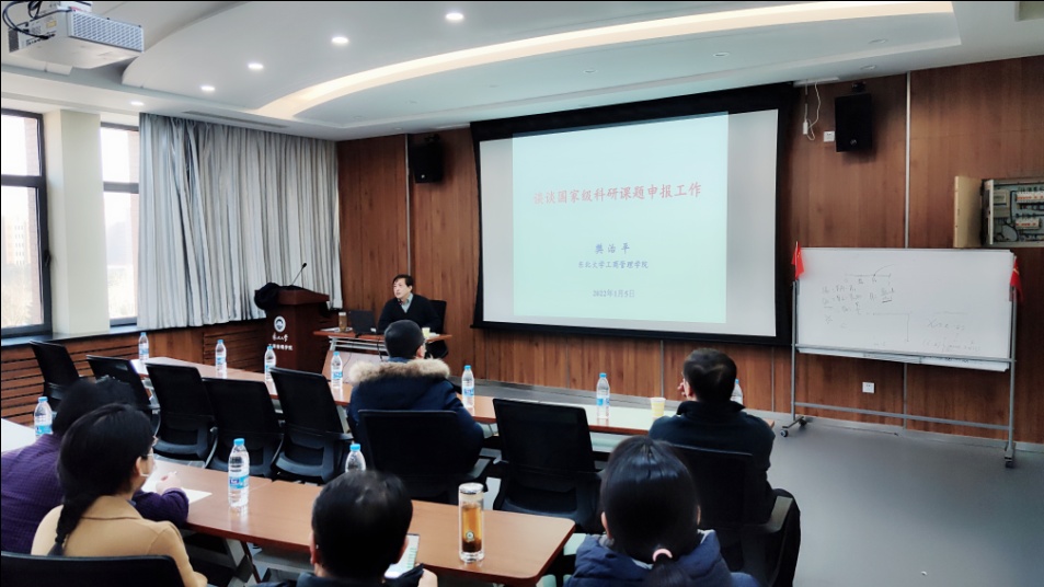 2022年1月5日下午,我院在文馆B320会议室举行2022年度国家基金项目申报第四场专题报告会,特邀请樊治平教授进行讲座,樊老师根据自己多年的经验,紧密结合我院实际,进行了《谈谈国家基金项目的申报工作》的专题报告会。学院各一级学科负责人、学系主任、有在研基金项目的教师和拟申报2022年度国家基金项目的教师、部分博士生共计70余人出席会议,报告会由院长蒋忠中教授主持。