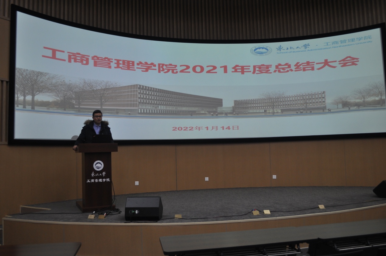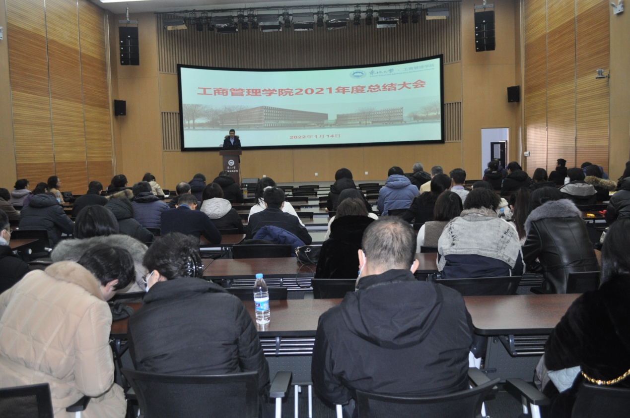 1月14日上午,工商管理学院在文管学馆B450报告厅召开2021年度工作总结大会。学院党政班子成员和全体教职工参加了会议,会议由院长蒋忠中主持。