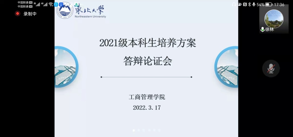 为贯彻落实东北大学“五育并举”的人才培养体系再造目标任务,3月17日下午14点,工商管理学院通过腾讯会议组织召开了2021级本科生培养方案线上答辩论证会。国内各知名企业专家,学校教务处副处长徐林,工商管理学院院长蒋忠中、副院长孙新波,学院教学指导分委员会委员、各本科课程项目主任、本科课程项目管理中心工作人员,教务处教学运行管理科工作人员,共39人参加会议,会议由工商管理学院副院长孙新波主持。
