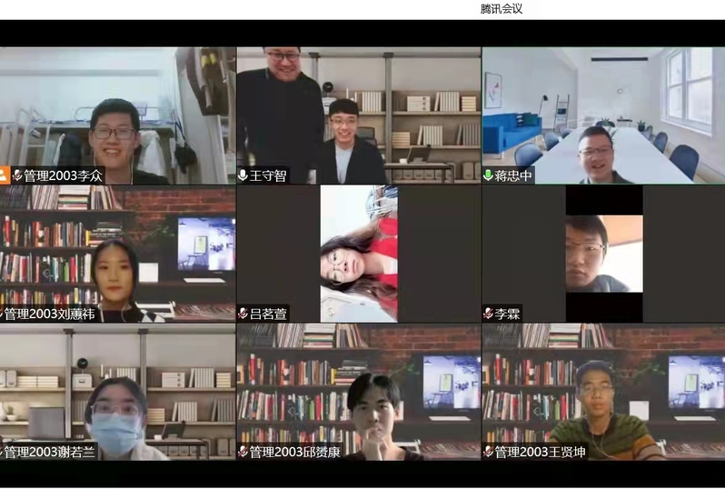 为深入了解班级同学的思想情况,巩固班集体建设, 3月25日11:00,管理2003班于线上开展了新学期线上交流会。院长蒋忠中、辅导员王守智应邀出席,班级全体成员参与本次会议。