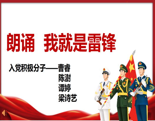 为弘扬雷锋精神,支部成员共同云游了位于湖南长沙的雷锋纪念馆,了解了雷锋的一生,钟蔚颖同学分享了自己的感想。团支部中四位入党积极分子为大家带来了朗诵《我就是雷锋》,激励我们学习雷锋精神,以实际行动展现青年担当、贡献青春力量。最后,团支部成员在纸上写下了自己对英雄雷锋想说的话,并在镜头前进行了分享和展示。为了响应“学习雷锋好榜样”的号召,团支部成员在课余时间进行了多次志愿服务。