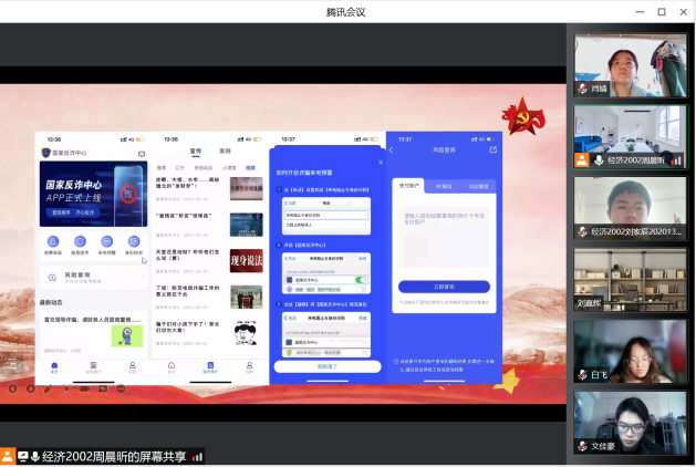 在防诈骗部分,通过对典型受骗案例及电信诈骗现场视频的分析,同学们了解了电信诈骗的常用伎俩。相关案例起到了良好的警示作用,增强了支部成员的防诈骗意识,达到了防范教育的目的,让反诈防诈的警钟在心中长鸣。