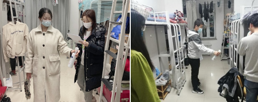 本次寝室安全卫生检查范围包含本、硕、博各年级学生寝室,走访过程中,严立宁与同学们就封闭管理期间的校园生活和线上学习状态深入交流,并对树立积极向上的寝室文化提出了建议。辅导员们强调了校园封闭管理期间宿舍卫生环境对同学们身心健康的重要性,对各寝室的卫生建设提出了整改意见。本次走访重点排查了学生宿舍的安全隐患、人走断电以及违章电器的存有和使用情况,并对各寝室进行了消毒工作。