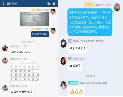 2022年3月24日-29日工商管理学院2018级本科生党支部为保障全体复试同学顺利进行面试,从早起提醒、帮带午餐、复试场地协调等各方面持续为管院莘莘学子升学之路保驾护航。