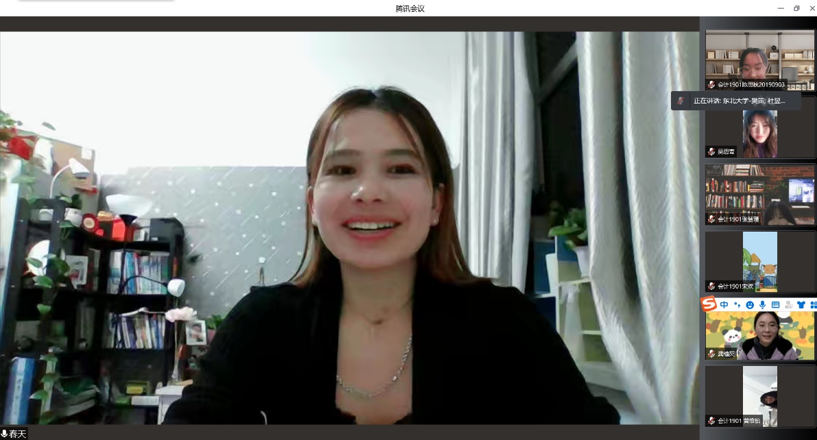 活动伊始,樊迪对会计1901团支部同学表示亲切的问候,关心支部同学在疫情期间的日常生活和健康状况,并号召支部同学积极响应国家和学校的防疫措施,齐心协力共抗疫。