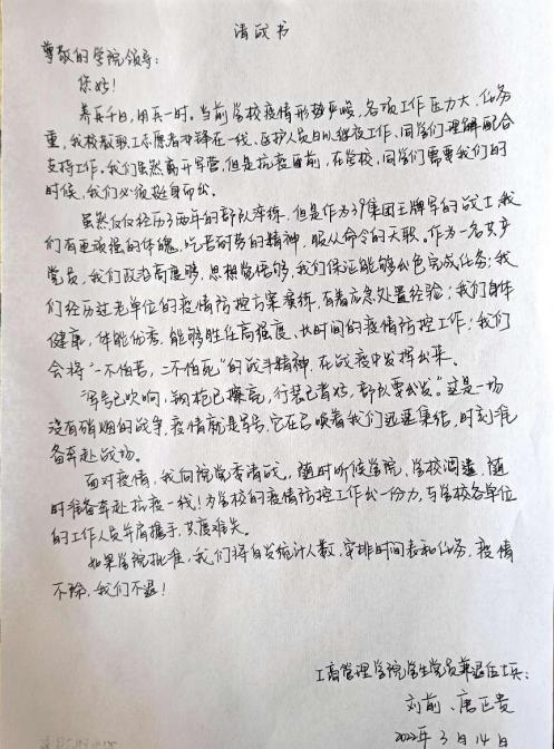 在校园封闭管理的特殊时期,工商管理学院学生党员挺身而出、冲锋在前,以多种方式守护着校园疫情防控的安全底线。他们讲奉献、勇担当、有作为,用实际行动诠释了学生党员的信念、坚毅与担当。(学生工作办公室 供稿)