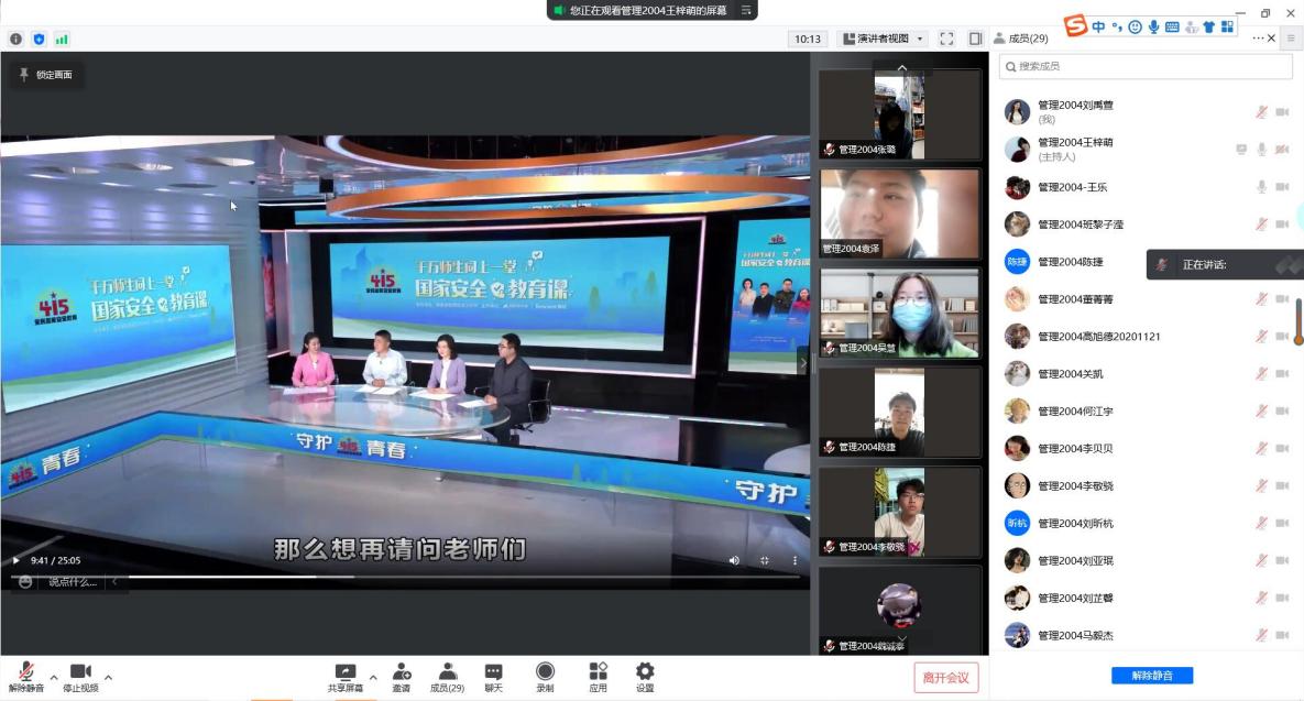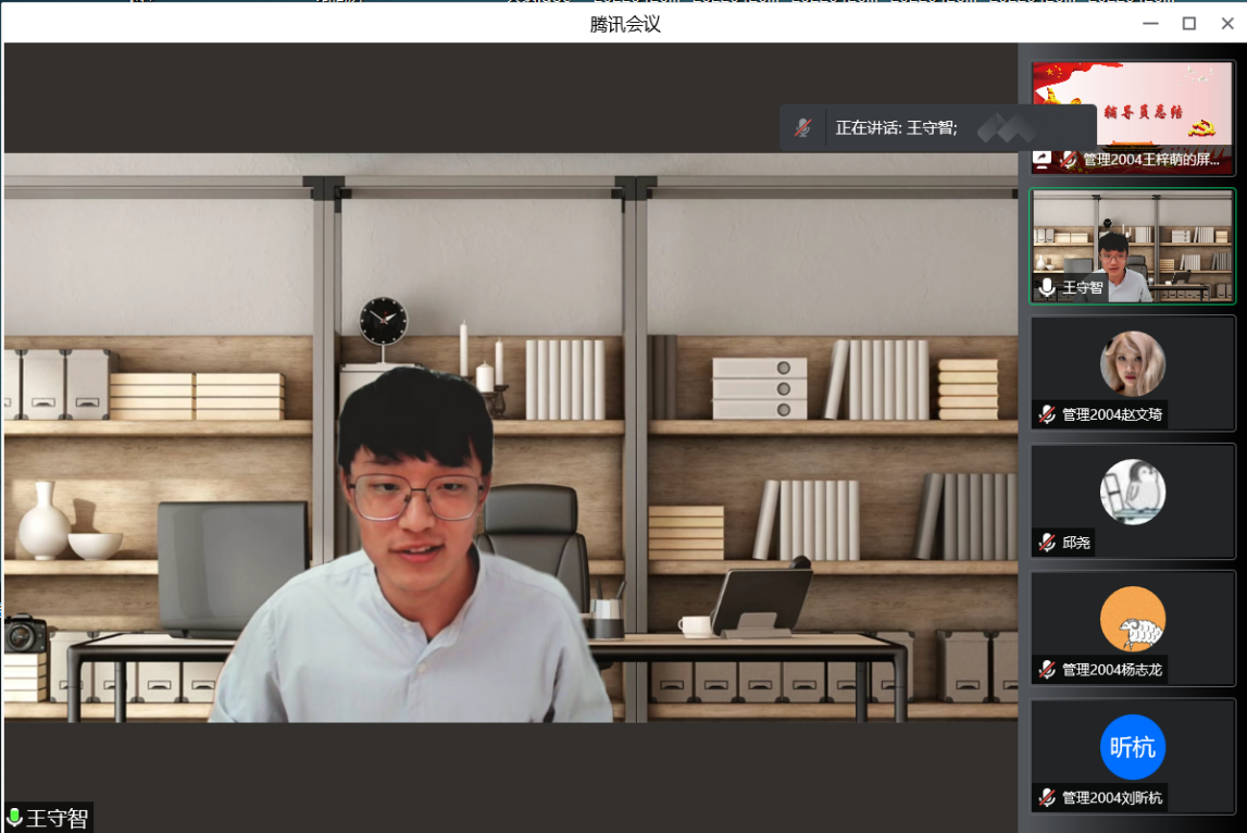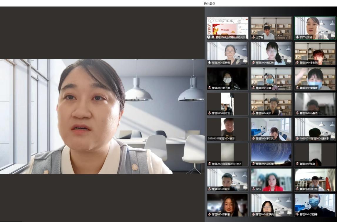4月26日,管理2004团支部于线上开展“学习两会精神·续写百年荣光”主题团日活动,资产与实验室管理处副处长郑旭、辅导员王守智应邀出席本次活动。