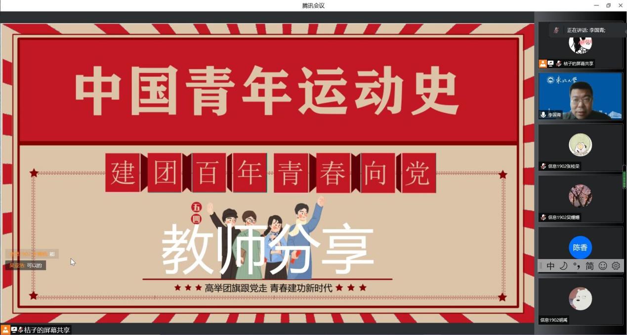 2022年4月23日,信息1902团支部于线上开展“学习‘两会’精神,续写百年荣光”主题团日活动,跨文化战略研究院副院长李国青应邀出席。