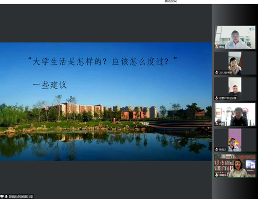辅导员杨光表达了对同学们衣食住行等学习生活各方面的关切;提醒同学们要严格遵守学校的防疫政策及日常管理规定,营造良好的学习生活环境;并对同学们未来的大学时光寄语了美好祝福。