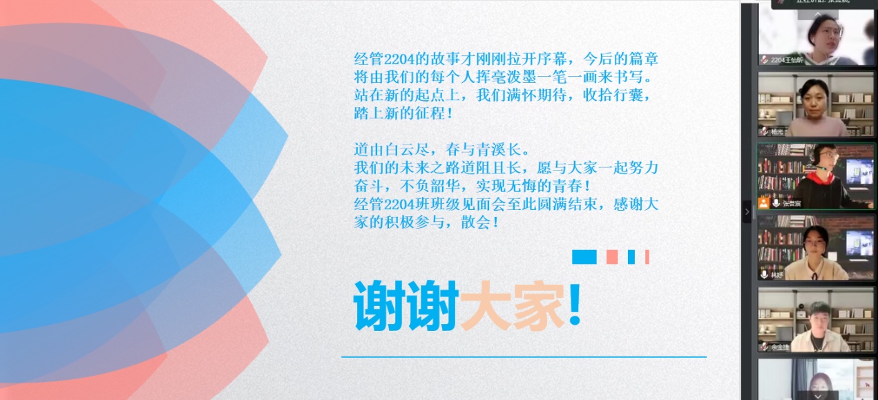 10月17日下午,经管2204班以“新起点,新征程”为主题成功召开线上班导师见面会,班导师朱春红、辅导员杨光、成长发展指导员杜晓月应邀出席,班级同学全员参会。