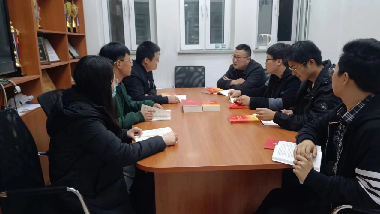 2022年11月11日晚,工商管理学院驻校教职工于三舍B116开展党的二十大精神专题学习会及交流座谈会。工商管理学院党委副书记兼副院长严立宁、学院运营与物流管理系教师周清、经济学系教师王嵩、工业工程系教师崔鹏浩、学生工作办公室驻校辅导员芦书豪、王守智、丁竹参与本次活动。