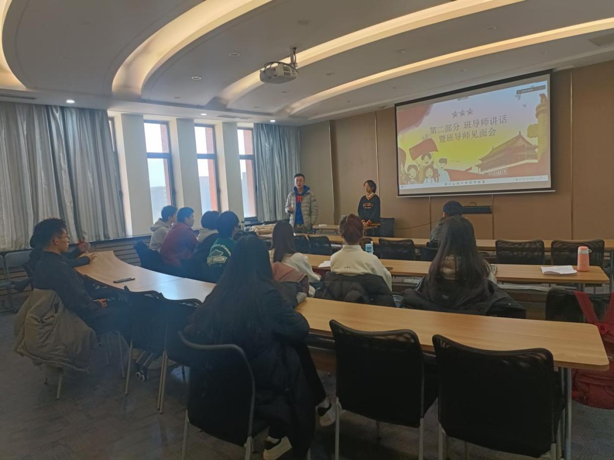 学院副院长、班导师贾建锋教授围绕党的二十大报告中关于教育、科技、人才的重要论述与大家分享了自己的学习感悟。同时,围绕如何做一名优秀的大学生和建设一个富有战斗力的班集体,对班级同学提出了期望和要求,并从学习与生活方面出发,叮嘱同学们要珍惜大学时光,努力学习,发奋图强,同时也要注意身体和心理健康,做一个全面发展的可塑之才。贾老师特别强调同学们应该学会沟通,学会交流,共同营造“简而美”的班级文化。