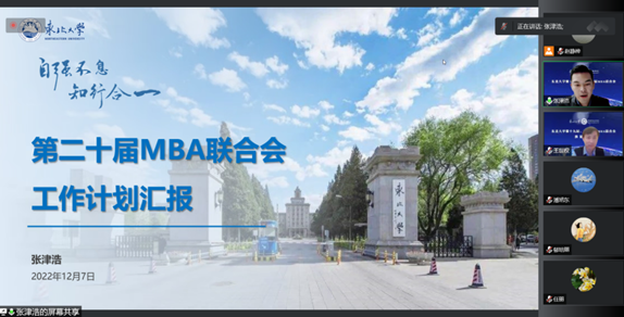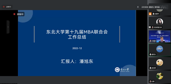 2022年12月7日,东北大学第十九届、第二十届MBA联合会换届大会在线上顺利召开。工商管理学院院长蒋忠中、党委书记任丽、副院长郁培丽出席本次换届大会。工商管理学院MBA教育中心主任王世权主持会议。