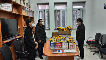 已经推免保送的同学自愿担起配送员的角色,分享幸运,传递温情,将福袋高效有序地配送至每位考研学子的寝室门口,实现无接触配送,确保了考研学子考试前良好的身体状态和充沛的学习精力。