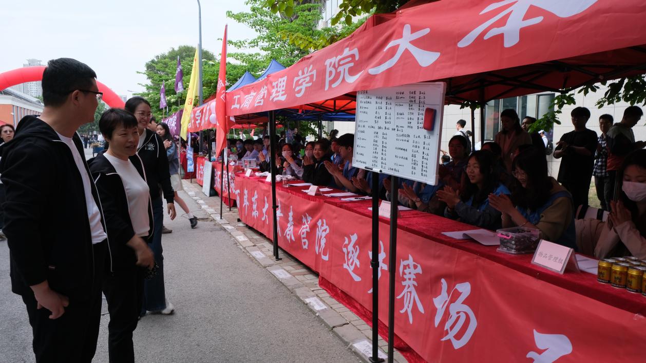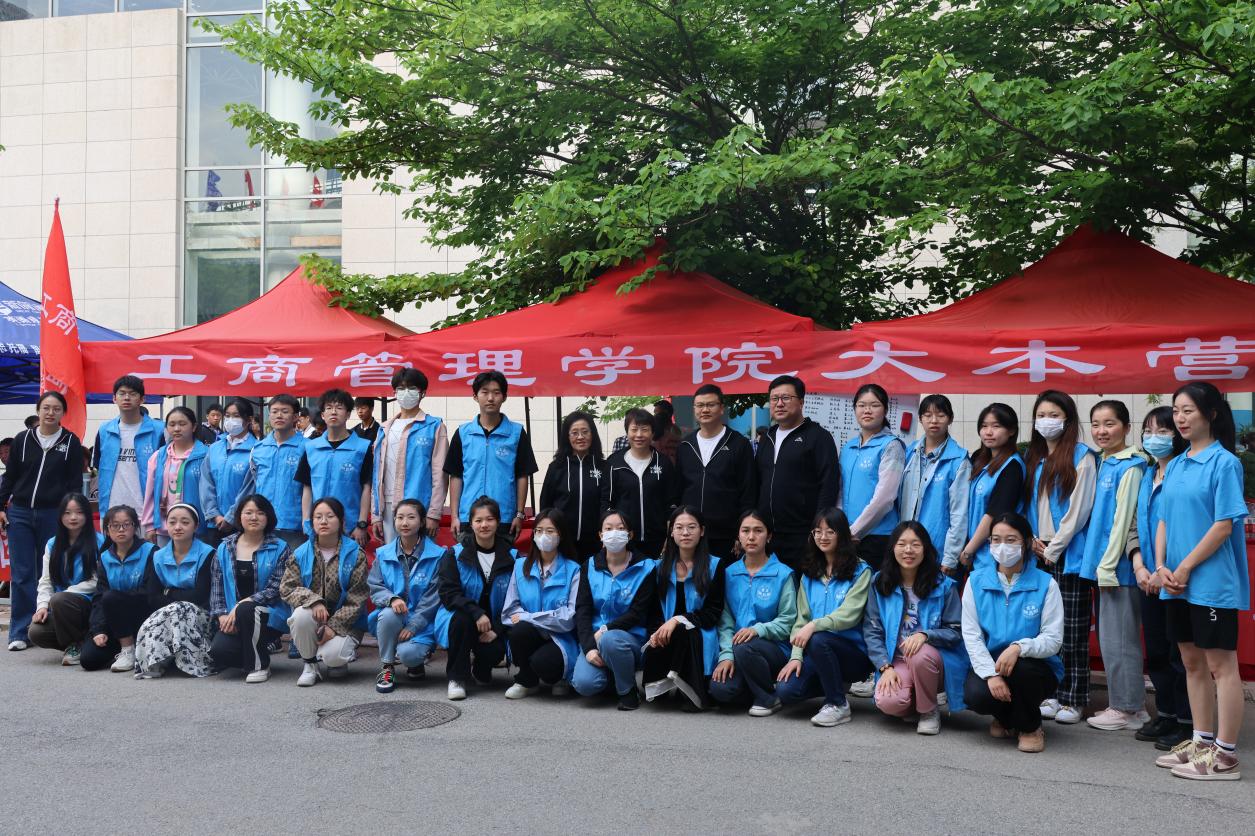 5月12日上午7:00,工商管理学院院长蒋忠中、学院党委书记任丽于南湖校区五四体育场慰问运动会参赛选手、啦啦操队员及志愿服务工作者。