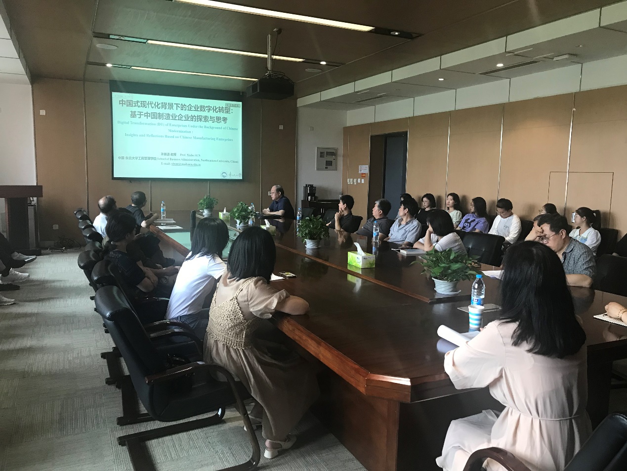 2023年7月12日,按照关于深入开展学习贯彻习近平新时代中国特色社会主义思想主题教育工作计划,学院副院长孙新波教授于文管楼B306讲授“中国式现代化背景下的企业数字化转型:基于中国制造企业的探索与思考”专题党课,党课由工商管理教师党支部书记王宝森主持。工商管理党支部、经济学党支部、工商管理博士生党支部的党员聆听了此次党课。