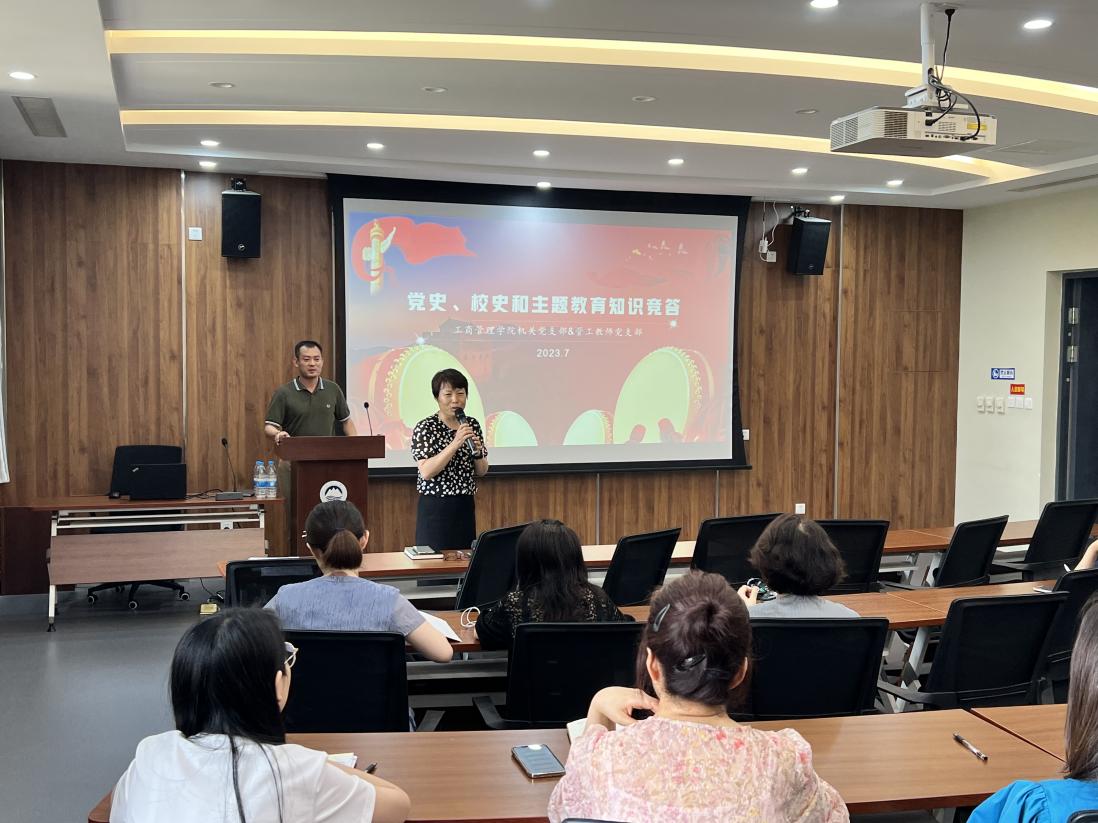 为检验对习近平新时代中国特色社会主义思想的学习效果,迎接建校百年,2023年7月12日在文管学馆B320工商管理学院机关支部与管工教师支部联合开展“深化主题教育,迎接建校百年”主题党日活动,开展党史、校史、主题教育知识竞赛,并邀请中国东北振兴研究院副院长李凯教授为两个支部党员做了“以高水平制度创新统领东北转型振兴”主题报告。