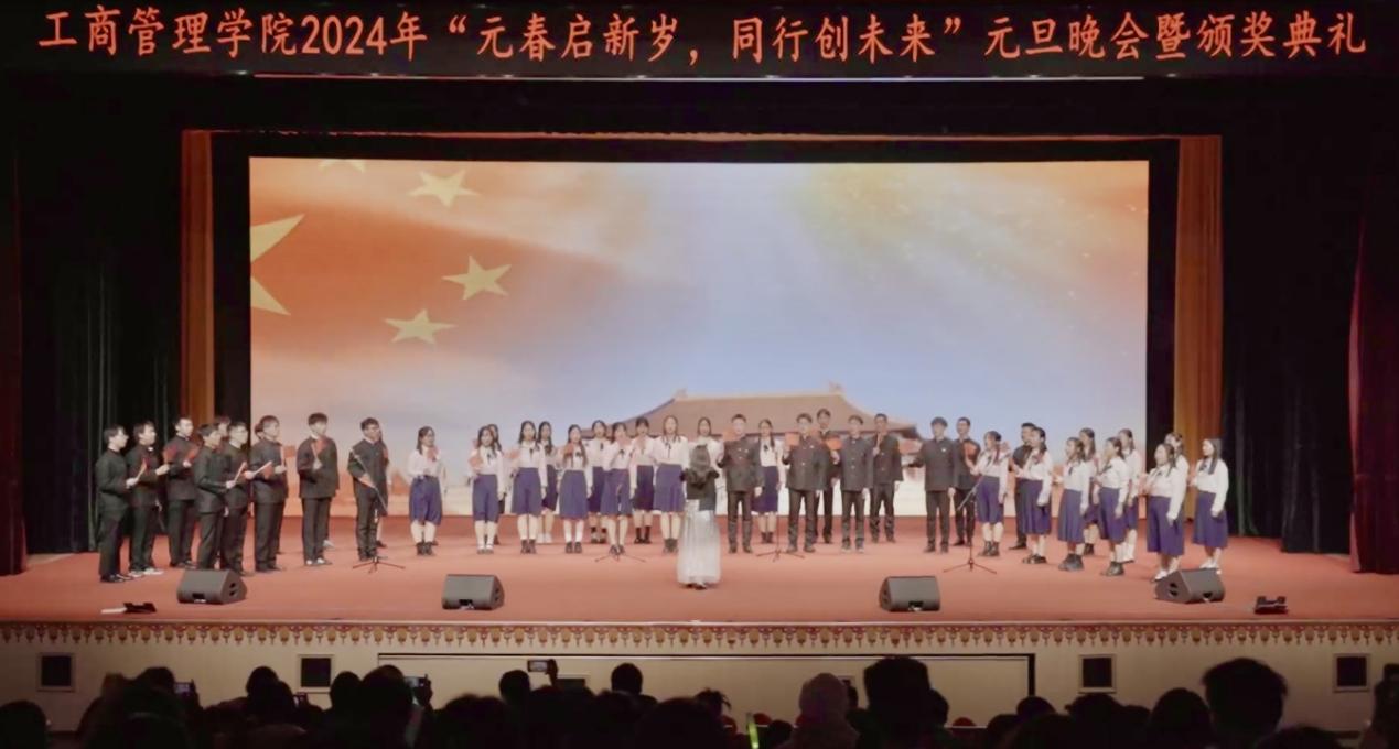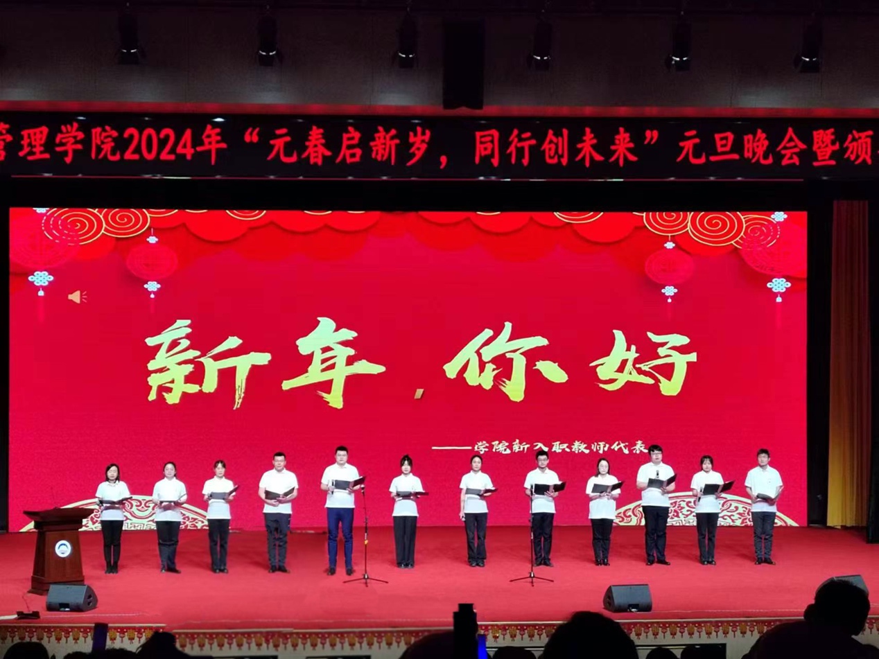 颁奖结束后,工商管理学院新入职教师同台表演了诗朗诵《新年,你好》,表达对师生们过去一年中的辛勤付出和取得的成就的肯定和感激,并代表学院向全体师生致以新年的问候和祝福。