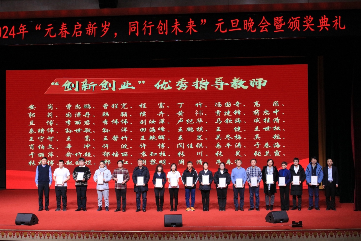 12月18日18:30,工商管理学院2024年“元春启新岁,同行创未来”元旦晚会暨第七届“德馨业勤”优秀班导师、2023年创新创业优秀指导教师、第七届商英奖章颁奖典礼于浑南校区学生活动中心二楼多功能厅举行。中国工程院院士、东北大学校长冯夏庭,校党委宣传部常务副部长闫研、校长办公室主任刘延晖、学生工作处处长张哲、公安处处长张迪、浑南校区管委会主任杨定鹏、学生指导服务中心主任刘云飞、创新创业学院常务副院长李鹤、校团委副书记张忠英、研究生院教育管理办公室主任欧阳恒岳、工商管理学院领导班子以及校友代表、学院教师代表出席晚会。颁奖典礼由工商管理学院党委书记任丽主持,学院各年级学生参与本次晚会。