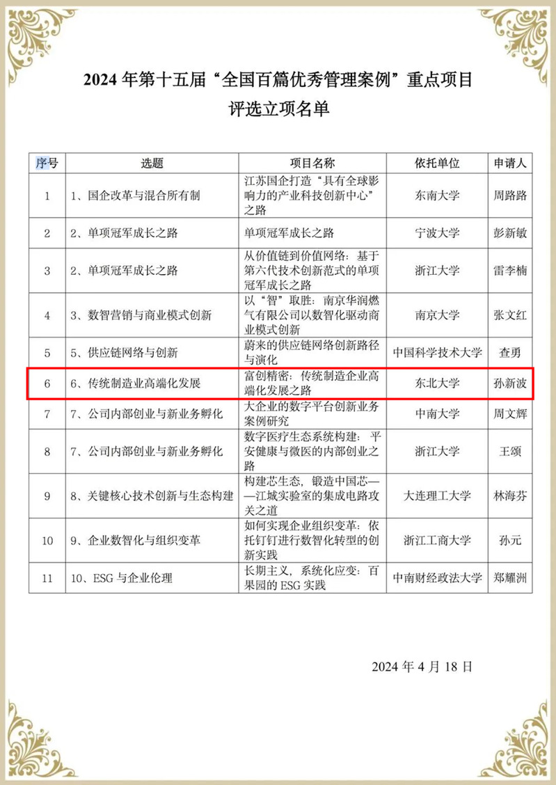 近日,我院孙新波教授获批第十五届“全国百篇优秀管理案例”重点项目,立项题目为“富创精密:传统制造企业高端化发展之路”,是学校首次获批主持“全国百篇优秀管理案例”重点项目。