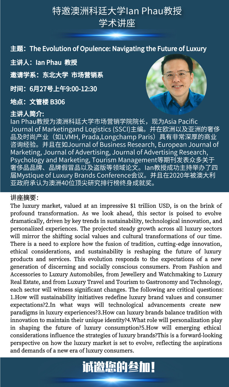 邀请澳洲科廷大学市场营销学院院长Ian Phau教授学术报告