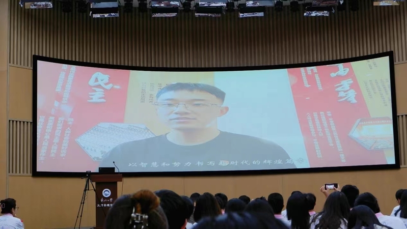 党课上,2024届本科毕业生辅导员杨光、王守智为毕业生党员们精心准备了毕业寄语视频,并在党课现场进行播放。他们祝愿所有同学都能收获精彩美满的人生,并嘱咐同学们在今后的工作和生活中,始终坚守初心,勇担使命,为党和人民的事业添砖加瓦,为实现中华民族伟大复兴的中国梦贡献青春力量。