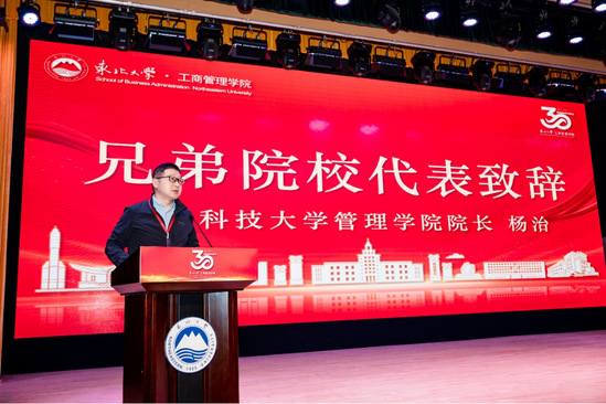 王兴伟表示,人文社会科学学科是学校一流大学建设的重要支撑。希望工商管理学院以建院30周年为契机,坚定不移走内涵式发展道路,以高质量党建为引领,以师资队伍建设为抓手,以人才培养质量为重点,以学科创新发展为关键,以服务国家战略为核心,推动管理类学科争创一流,打造具有东北大学特色和风格的经济管理人才培养摇篮以及引领全球和中国特色的经济管理理论与方法的科学研究高地。王兴伟强调,学校将一如既往全力支持工商管理学院建设与发展,推动学院加快建成“国内一流、国际知名”高水平研究型学院,为加快建设教育强国,推动东北全面振兴、推进中国式现代化作出新的更大贡献。