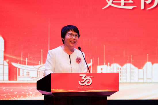 工商管理学院教授张翠华代表教师发言,分享了作为学院发展建设亲历者和见证人的感受和期待,并表示未来将与学院携手共进,开拓进取,共创价值,为推动学院建成高水平、研究型经管学院而努力奋斗。