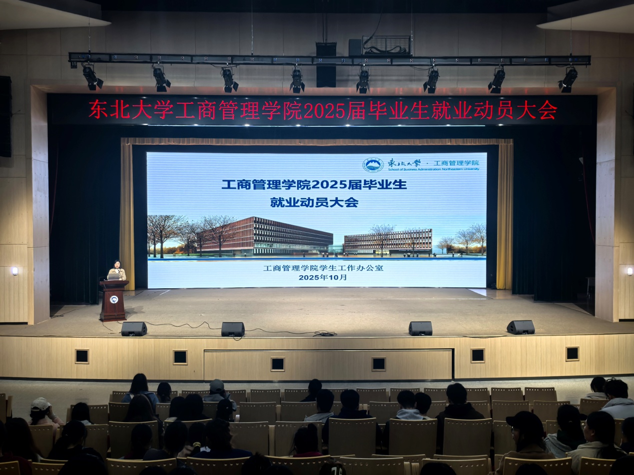 10月18日,工商管理学院于浑南校区学生活动中心二楼报告厅召开2025届毕业生就业动员大会,学院党委副书记、副院长【兼】吕昫光、毕业班辅导员出席会议,学院2025届本硕毕业生参加动员会。
