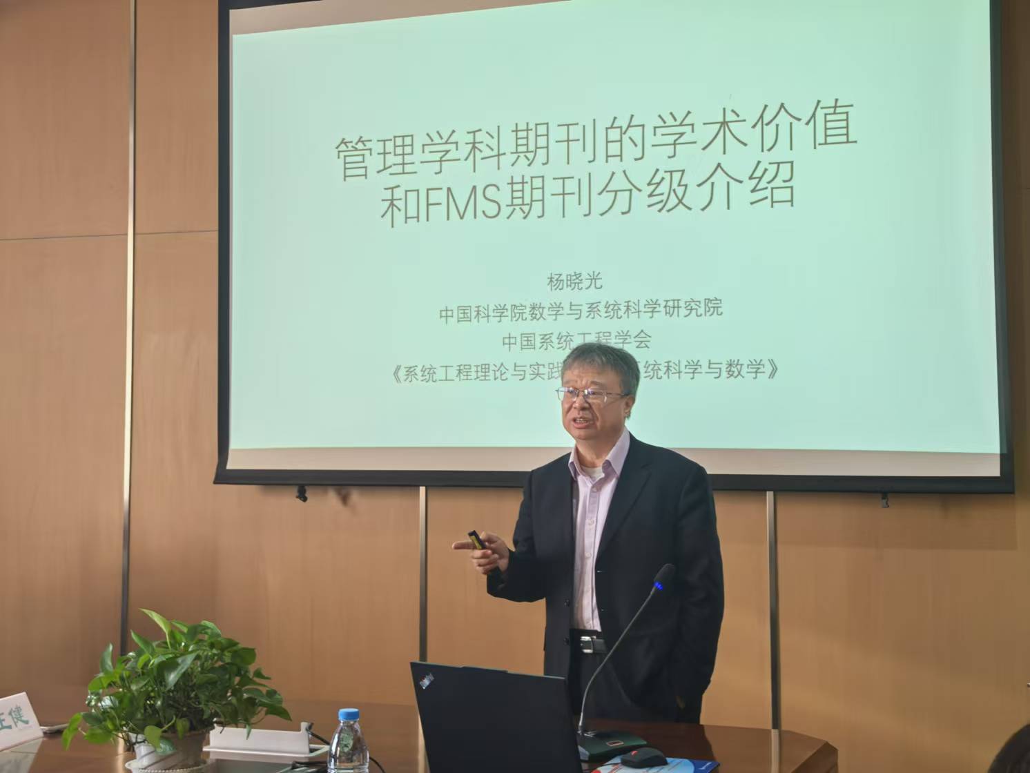在经管学科期刊介绍环节,杨晓光教授以“管理学科期刊的学术价值和FMS期刊分级介绍”为主题,从管理学研究对象的特殊性出发,全面讲述FMS期刊列表推荐背景,涵盖指导思想、基准办法、推荐列表动态收录等内容,为师生搭建起学术期刊体系认知架构。他指出,研究者要厘清研究范式,提炼学术思想,设计清晰的研究方案,并且就如何有效保障研究可行性等关键方面进行了深入剖析,引领师生向学术发表高峰攀登。