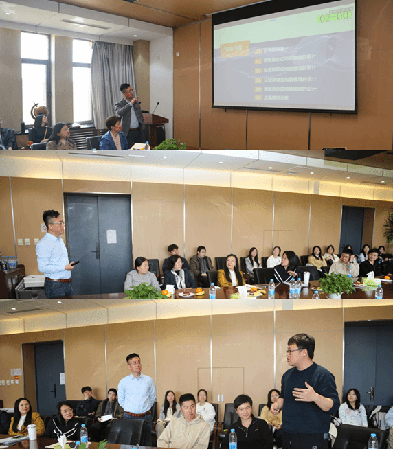 贾建锋以“数字化转型背景下教育教学中的问题情境设计与创造力激发”为题,从数字时代六大特征切入,系统阐释了新技术革命对教育形态的深刻影响。在实践环节,贾建锋通过“猜想悬念式”“生活实际式”“认知冲突式”和“游戏活动式”等四类问题情境设计方法的现场演示,生动展现了如何通过认知冲突创设、游戏化教学设计等手段激发课堂活力。贾建锋强调,现代教育应当实现从知识传递到思维训练的三重跃升。在互动交流阶段,参会教师围绕课堂参与度提升、教学能力发展等议题展开了热烈讨论。(本科教学办 供稿)