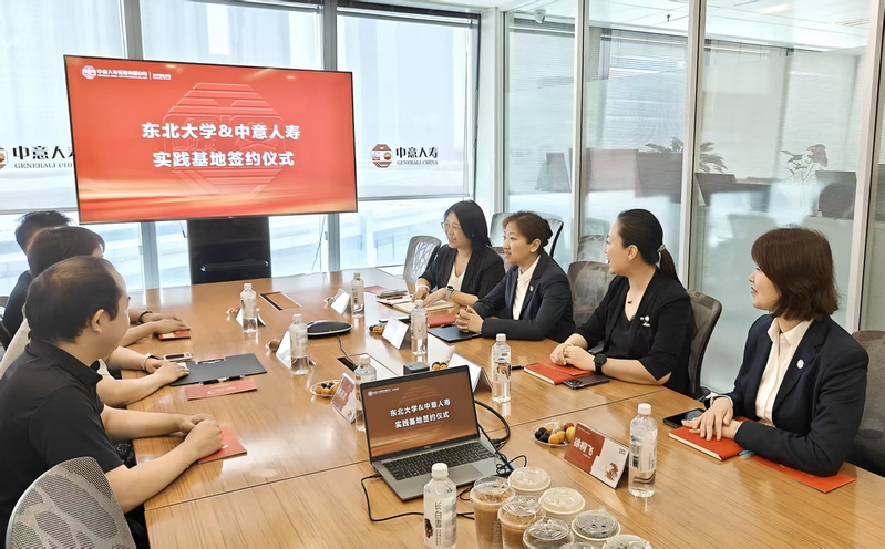 2025年7月10日,为深化产教融合,创新人才培养模式,东北大学与中意人寿保险有限公司辽宁省分公司(以下简称“中意人寿”)共建实践教学基地签约仪式隆重举行。东北大学工商管理学院实验中心副主任陈晓琳老师、实验中心朱茂龙老师,工商管理专业本科课程项目主任、组织管理系副主任闫佳祺副教授出席签约活动。