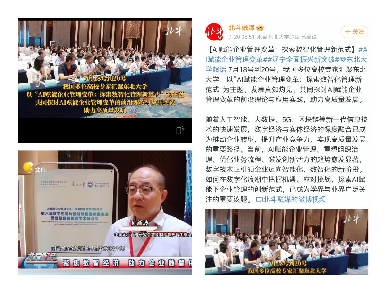 本届大会邀请了60余位国内外专家学者和企业高管,呈现了18场大会主旨报告、25篇论文交流分享、29场平行论坛,7本期刊对话,涵盖了AI赋能企业管理变革暨数智化管理新范式的诸多议题。会议期间,辽宁卫视《北方财经》栏目及《北斗融媒》视频号、微博视频号等媒体分别对大会进行了报道。本届专委会年会的召开,展示了智能制造与数智生态系统专委会理论创新与实践应用的丰硕成果,促进了数智管理领域产学研一体化深度合作,落实了党的产教融合、科教融汇方针与政策。专家学者、企业高管、咨询培训者们在交流中凝聚共识,在探讨中明确方向,在虚实共生中推动了AI赋能企业管理变革暨数智化管理新范式的融合发展。
