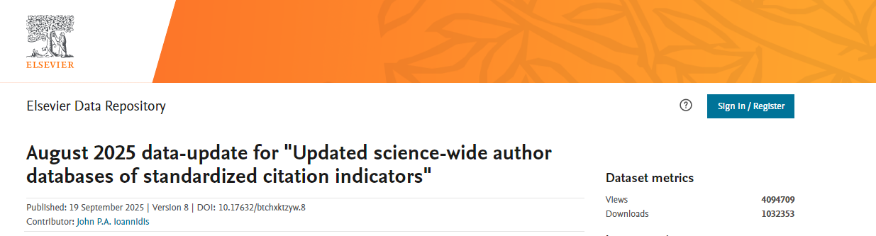 据了解,全球前2%顶尖科学家榜单分为“终身科学影响力排行榜(Career-long Impact)”和“年度科学影响力排行榜(Single-year Impact)”两大部分,从全球近700万名科学家中,通过基于其论文引用数、h因子、合著者修正的hm因子、单独或第一作者的文章引用数等综合参数,遴选出世界排名前2%的科学家,涵盖22个领域和174个子领域。其中,“终身影响力”榜单统计科学家职业生涯期间的综合表现,“年度影响力”榜单则聚焦上一年度的学术影响力。