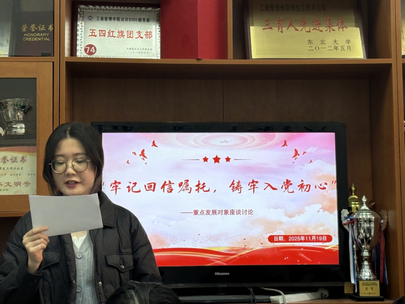 在完成党课学习环节与《榜样》视频学习后,为引导发展对象深化理解、常思常悟,学院党委专门组织了座谈交流会。发展对象们结合学习贯彻落实习近平总书记给东北大学全体师生重要回信精神以及参加此次培训后的学习感悟,就如何树立正确的入党动机,真正从思想上入党,做一名合格的共产党员等进行了深入交流。