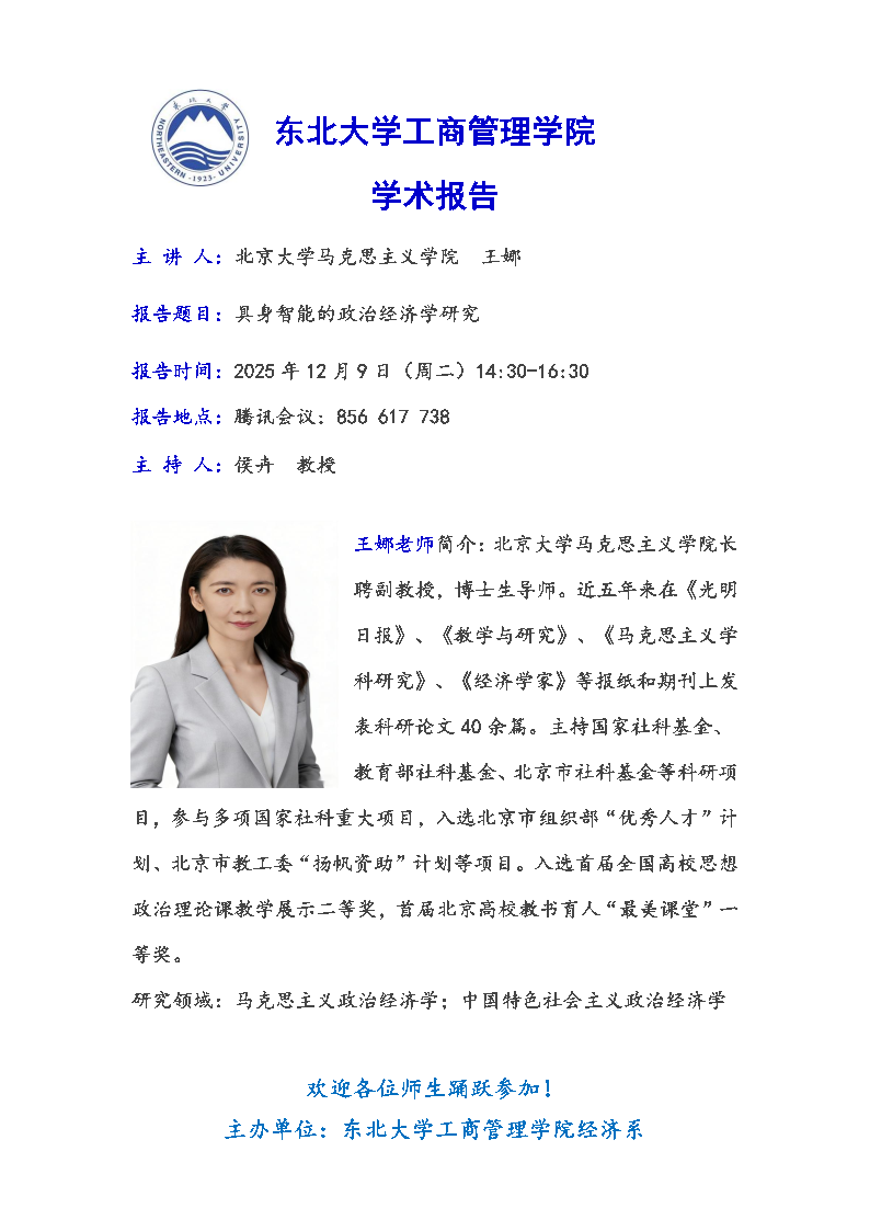 邀请北京大学王娜副教授学术报告
