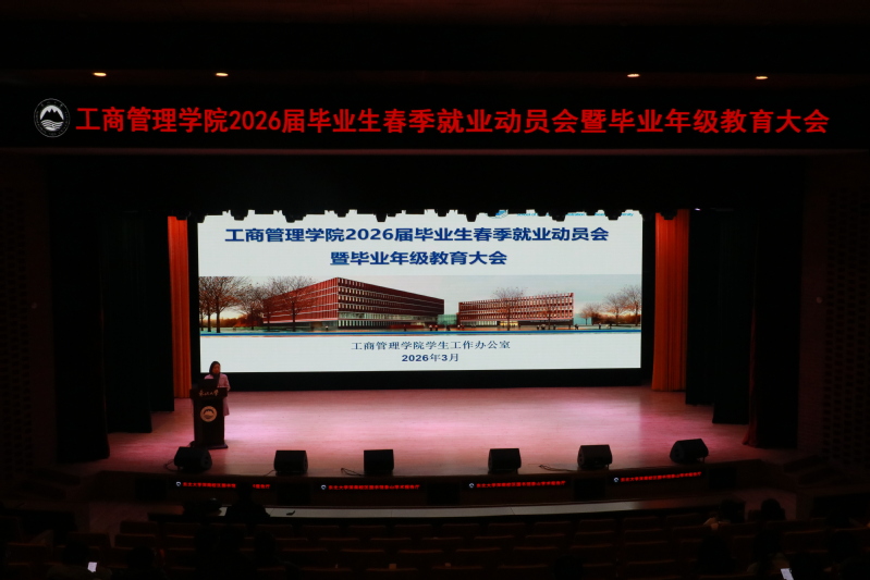 3月23日,工商管理学院在浑南校区图书馆泰山学术报告厅召开2026届毕业生春季就业动员会暨毕业年级安全教育大会,学院党委副书记、副院长(兼)吕昫光及毕业班辅导员出席会议,2026届本硕毕业生参加会议。