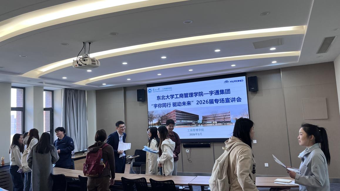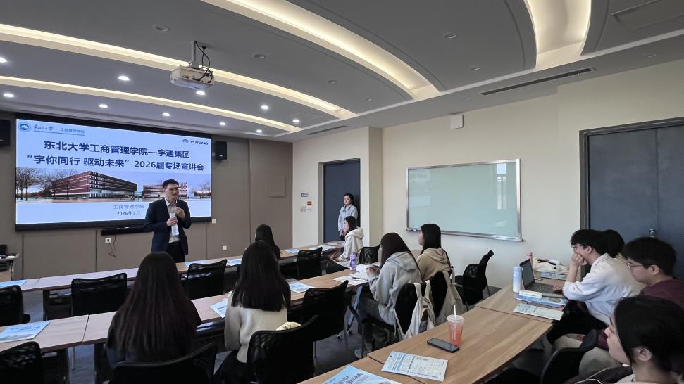 3月27日,工商管理学院邀请郑州宇通集团走进工商管理学院,联合举办“宇你同行 驱动未来”2026届就业指导专场推介会。宇通集团人力资源序列、财务序列、生产序列3位面试官出席本次推介会,学院多名本科、硕士应届毕业生到场听会。
