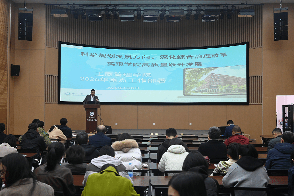 4月8日下午,工商管理学院2026年度工作会议在浑南校区文管学馆B450室召开。学院领导班子成员、全体教职工参加会议,学院党委书记韩斌主持会议。