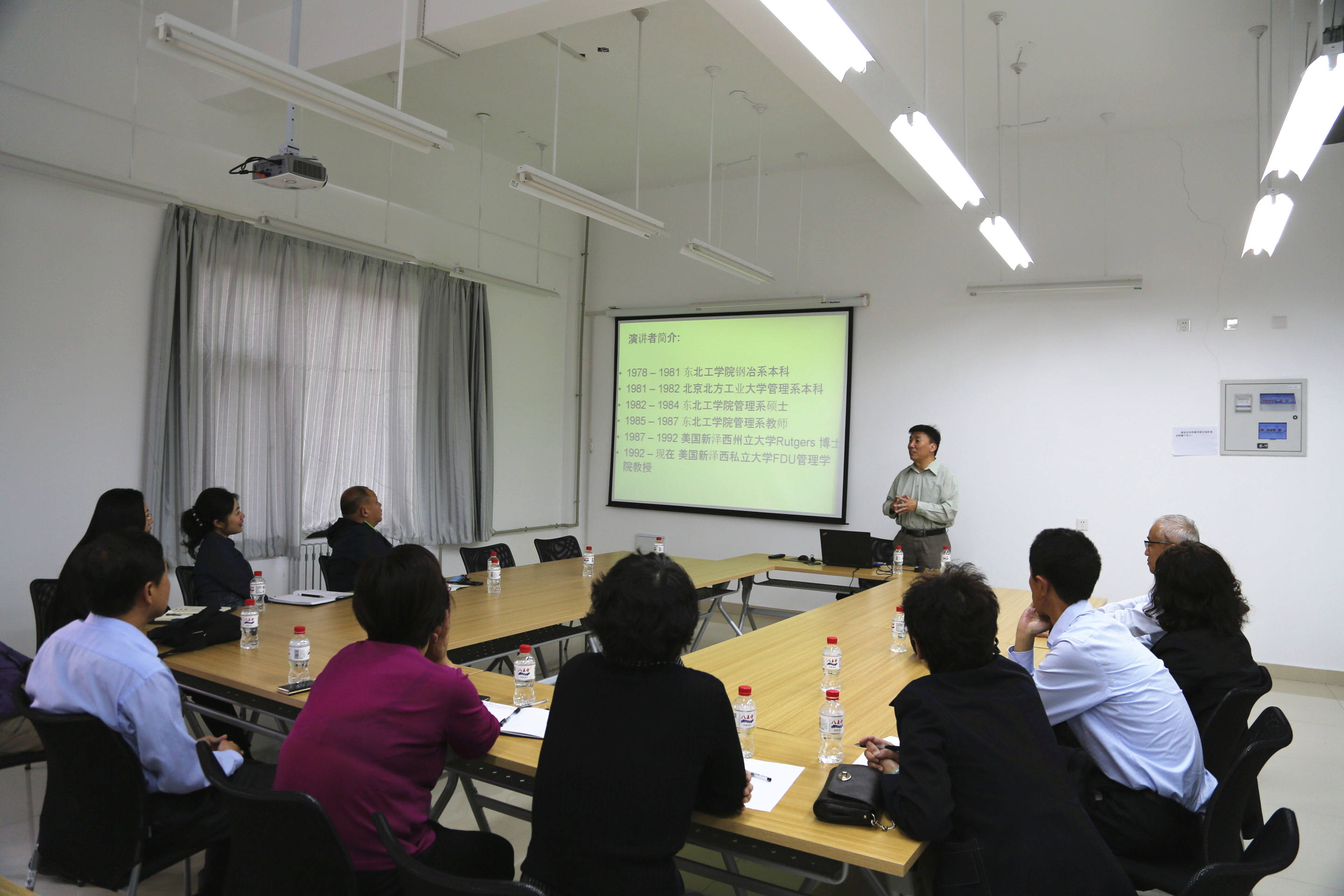 2016年5月25日14时30分,王朝勃教授在文管学馆B303室做了题为“如何在课程设计上融入‘联合国倡导的有责任的管理教育原则’”及“管理教育对智能数据分析的新趋势”的主题报告,并与工商管理学院各本科、硕士课程项目主任进行了研讨。