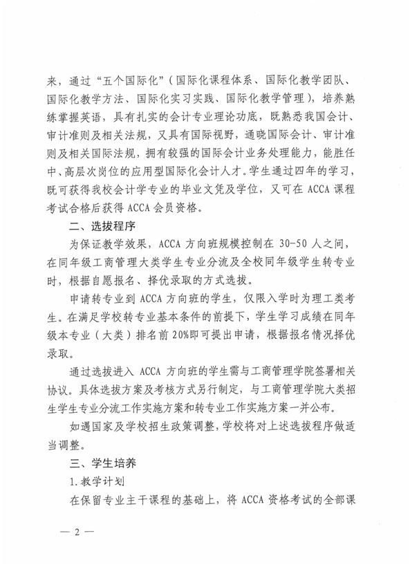 (二)工商管理学院本科生转专业坚持宽出严进的工作方针。我院不接收第二志愿学生,不接收任何类型的学籍异动学生,不接收小语种学生;转入会计学专业的学生均进入ACCA方向班,且需第一时间与工商管理学院签署相关协议;已转专业的学生不得再次转专业或回原专业。